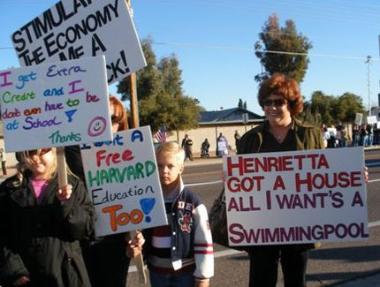 At the Mesa AZ protest against President Obama, KFYI listeners brought signs telling Santa Obama what