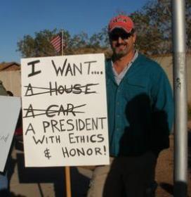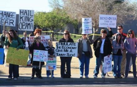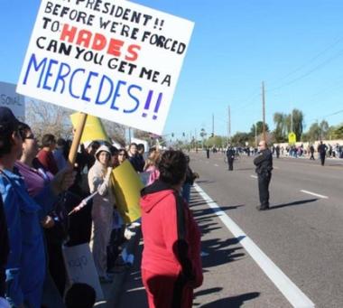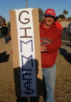 At the Mesa AZ protest against President Obama, KFYI listeners brought signs telling Santa Obama what
